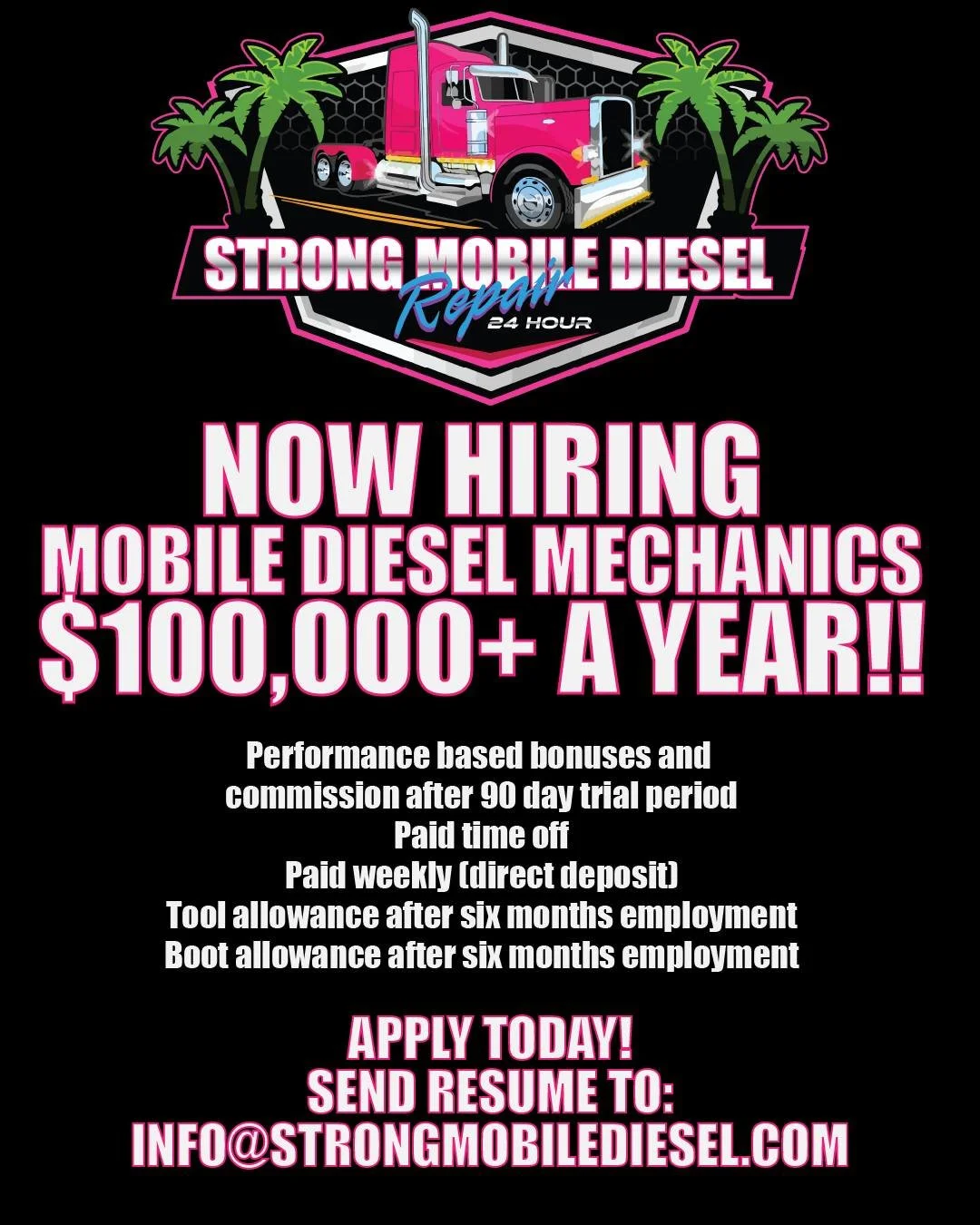 Strong Mobile Diesel LLC offers 24 hour heavy duty mobile roadside diesel engine truck and trailer repair. We answer your call 24 hours a day—even holidays.